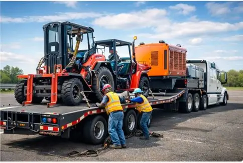 • Heavy equipment shipping with specialized trailers and secure tie-down systems